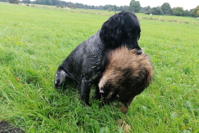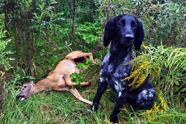 Auf der anderen Seite zeigte Chuck Norris von Beginn an aber auch bemerkenswerte Anlagen (u.a. eine ausgeprägte Raubwild- und Schwarzwildschärfe sowie der Spurwille und die Spurtreue). Er ist überaus aufmerksam und hochintelligent. Damit stellt er uns aber auch vor so manche Herausforderung. Chucko nutzt jede Gelegenheit zum Test und findet mit seiner komplexen Denkweise, seiner Beobachtungsgabe und seinem Durchhaltewillen Lösungen, die andere Hunde nicht im Ansatz bewältigen würden. Türen öffnen, Zäune überwinden oder sich mit der Hupe im Auto bemerkbar machen - das sind nur einige Beispiele für seinen klugen Kopf. Als leichtführig würden wir unseren Chucko nicht beschreiben, jedoch resultiert das - unserer Meinung nach - vor allem aus den Erfahrungen der Anfangszeit seines Lebens. Gewisse erworbene Eigenschaften kann er nur schwer ablegen. Gleichzeitig ist er aber auch ein Hund, der gefallen möchte. Er liebt die jagdliche Arbeit und tut alles für seine Bezugsperson. Seine stets gute Laune ist ansteckend und mit seiner Ausstrahlung wickelt er jeden um den Finger - und genau das weiß er auch!